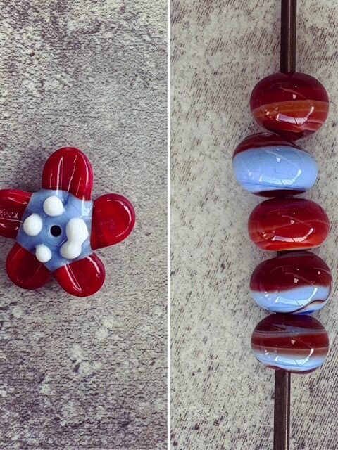 These beads began as… another bead. I’ve often been asked if I can remelt my own beads, and I’ve always said no — I didn’t think it would work. But…