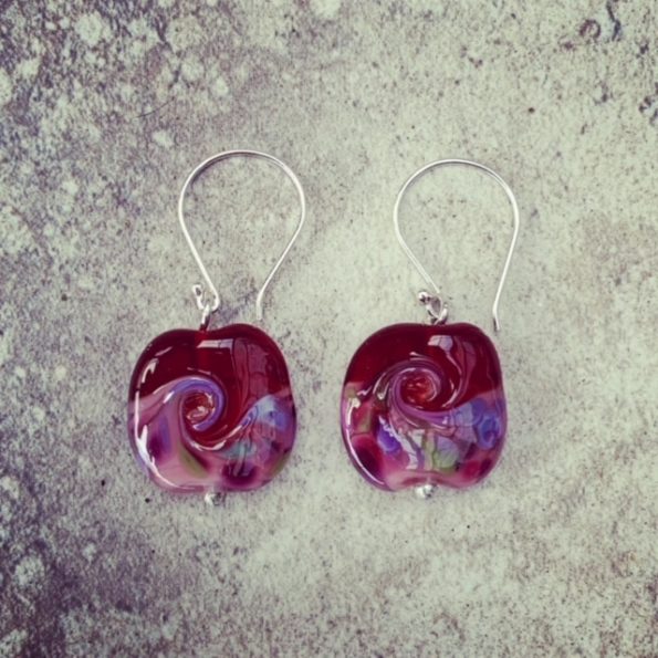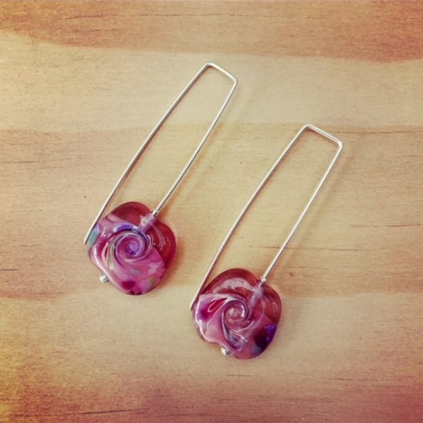 Day 317. I am getting some luscious earrings ready for my newsletter. They are variations of pink/purple/red wave beads in a variety of styles. This is today’s pair, and I…