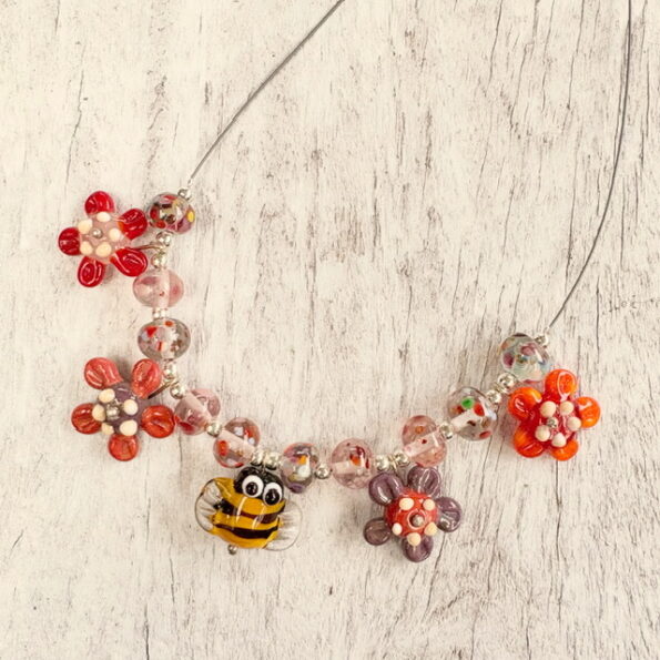 Melted Moments (not quite Monday)! I was looking through all of the little test beads I have been making this year and discovered I had more than enough green ones to make a bracelet. I also added a few other colours for a little pop.