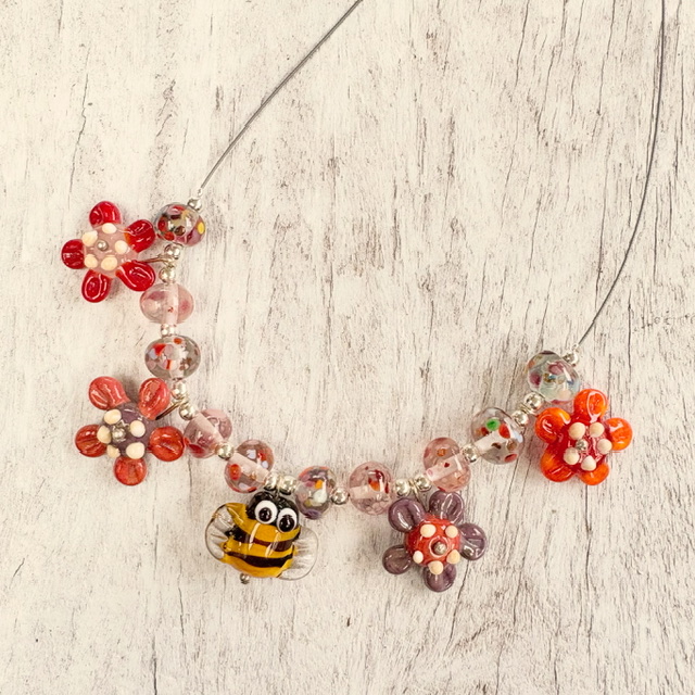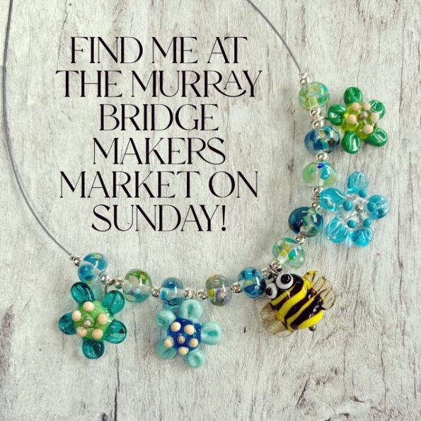 I had to share it as soon as I made this! I have been taking some of my old earrings apart and turning them into necklaces. Today while I was doing that, the little bee decided it wanted to be a necklace too. It was just sitting there amongst a whole bunch of beads. Happy accident! I will have this one at the Murray Bridge Market on Sunday!