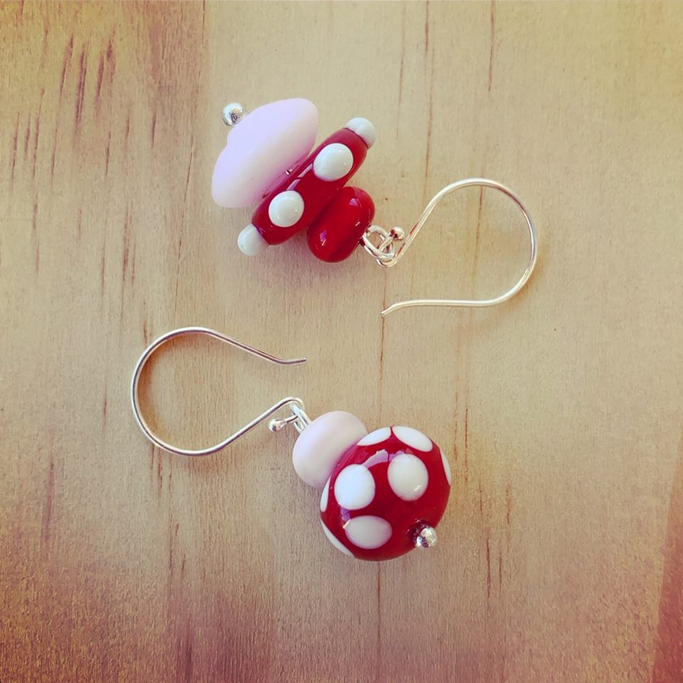 Day 6. One of the benefits of having made lots of beads over lots of years, is having beads laying around that might come in handy! I love the mis-matched look of these earrings!