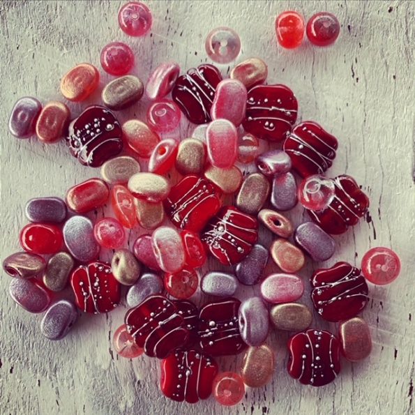 I haven’t made any jewellery with the red collection of beads yet, I think I will wait until the total gets closer to 1000. Luckily I have lots of other beads already made and ready to make jewellery. It was nice to put a few pieces together over the weekend, getting ready for my next @tartscollective shift.