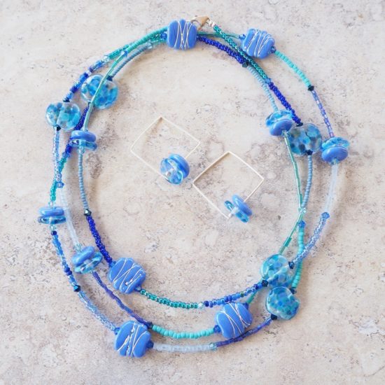 This week it’s time to show you the blue version of the necklace and earrings. I particularly like all of the shades of blue in this necklace, it would look awesome with so many different dresses or tops.