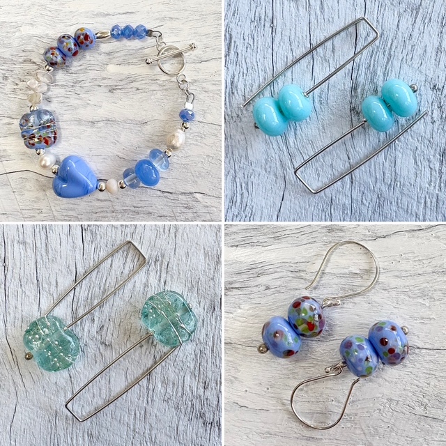 Some pretty blue one-off pieces available in my Etsy shop now. A mix of Italian and recycled glass. Check out the One Off section to see more.
