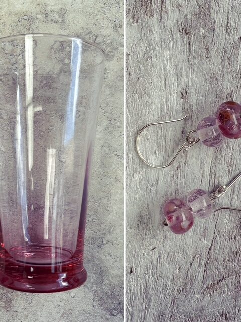 Melted Moments Monday. I am always intrigued by coloured glass and how it will react in the flame. This cup melted nicely and I like how the earrings honour the…