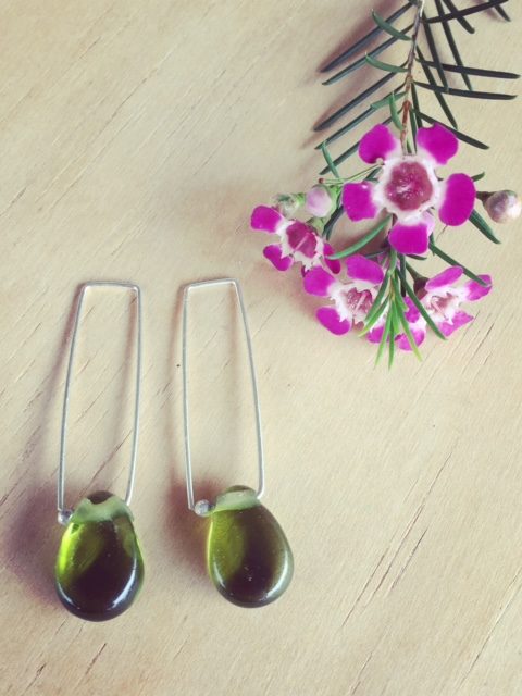 I pretty much love everything about these earrings: Made from a Coopers Ale beer bottle Embellished with gold leaf The shape of the beads The style of the earrings! Grateful…