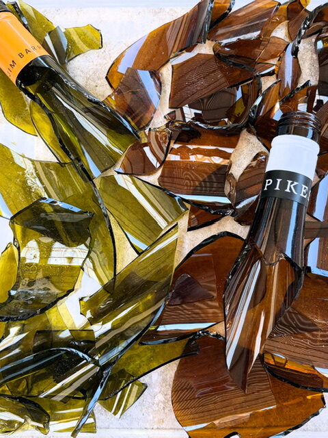 The collection of beads I am making for the Clare Valley exhibition is coming together. These beads were made from a Pikes Riesling bottle.