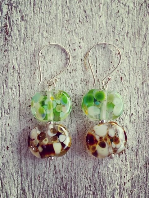 Day 89. Gin and tonic earrings. The bottom bead is from a Hendricks Limited Release gin bottle, top bead from a Fever Tree tonic water bottle. Yesterday I tried cucumber…