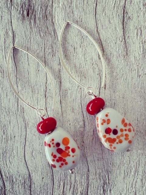 Day 63. So following on from yesterday, I thought I would try adding frit to other shapes! I like the contrast in these earrings.