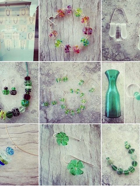 I love this bracelet featuring beads made from all sorts of recycled glass objects including wine bottles, gin bottles, green Depression glass, old glasses, and even tonic water bottles! Pretty…