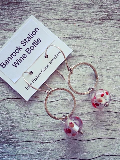 Day 2. Long, rectangle Bombay Sapphire Gin recycled glass bead hoop earrings! And a sneak peak at my super tidy workspace. Not sure how long that will last!