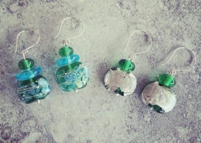 Handmade recycled glass beads, made from a @banrockstationwines wine bottle. I have been getting some new earrings…
