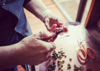 Flower beads made from a Tanqueray Gin bottle! Oh gosh, what a colour! I said…