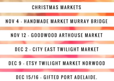 Just letting you know I’ll be at the following markets leading up to Christmas. Hope…