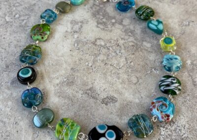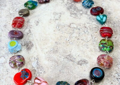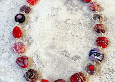 Another statement necklace featuring my handmade recycled and Italian glass beads in reds, purples and…
