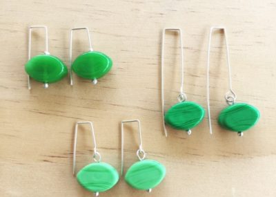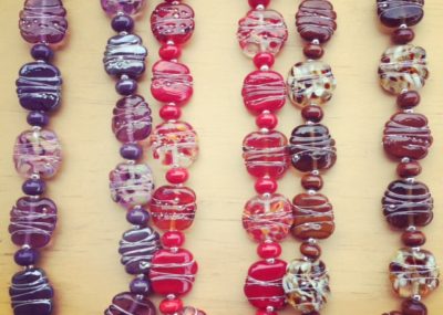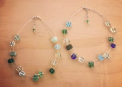 I used a mix of green recycled glass beads for these necklaces including Green Depression…