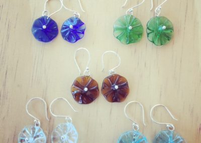 These earrings have all been made from recycled glass. This photograph features Skyy Vodka, Peroni Beer,…
