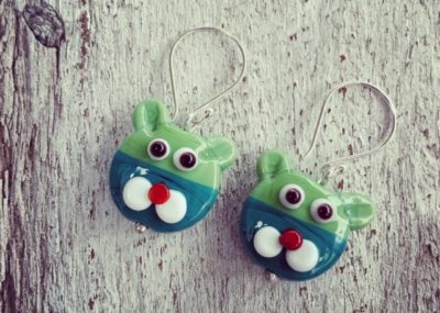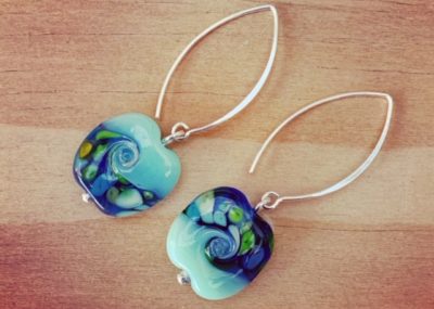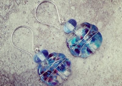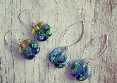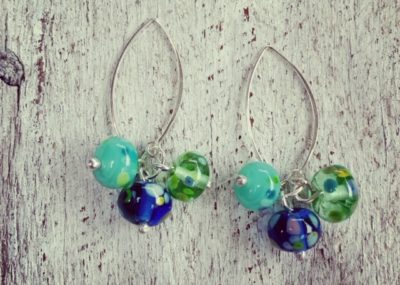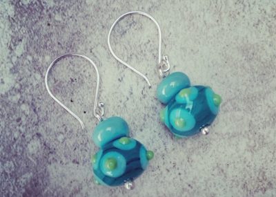 Day 297. Gin and tonic earrings, this time featuring the small blue beads made from…