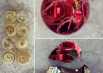 I think this one started life as a big glass light cover…and when another artist…