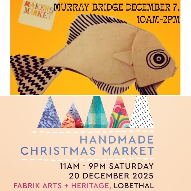 Looking forward to these two fantastic handmade market opportunities in December. The first one is in Murray Bridge, Sunday December 7 from 10am-2pm at the @murraybridgeregionalgallery and the other one is Saturday December 20 from 11am-9pm in Lobethal at @fabrik.arts Hope to see you at one of them!