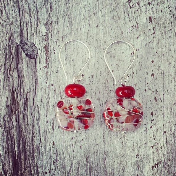Day 360. I hope you have enjoyed your Christmas Day as much as I have enjoyed mine. Sparkly wine bottle beads with small red Italian glass feature in this pair…