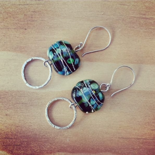 Day 316. I have been sharing all sorts of recycled glass earrings lately, because there are so many different glass bottles that I can use. Today’s beads are made from…