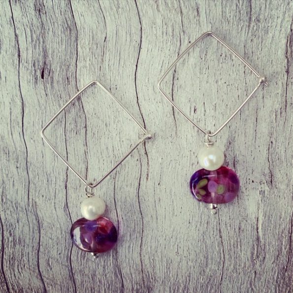 Day 255. Take an old idea and change one thing. I changed yesterday’s square hoops and made them rectangle hoops! The beads are made from wine and gin bottles. Hmm,…