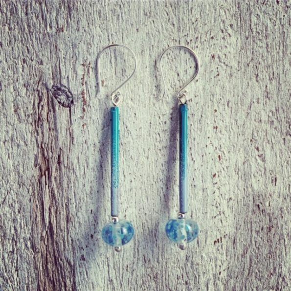 Day 152. Slightly different variation from yesterday. The recycled glass beads are made from a wine bottle and decorated with gold pixie dust.