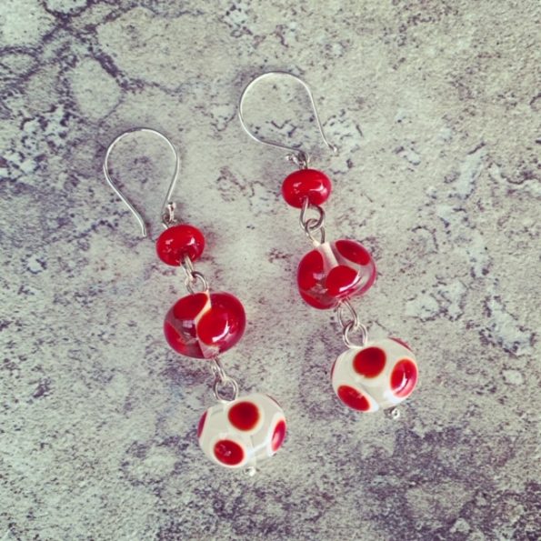 Day 110. I love how ideas flow. From yesterday’s earrings to today’s pair. I wonder what will brew overnight for tomorrow’s pair? I have some more red spotty beads that…