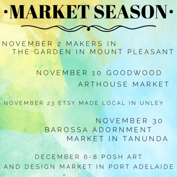 Wow! I am thrilled to let you know about all of the wonderful markets I will be doing this year. So excited! If you are thinking about a custom order…