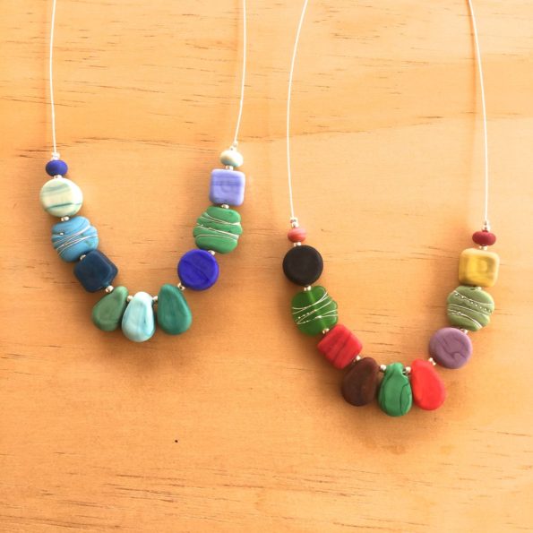 I used a mix of green recycled glass beads for these necklaces including Green Depression glass, wine bottles, Peroni beer bottles and Moet champagne bottles! A lovely mix of bead…