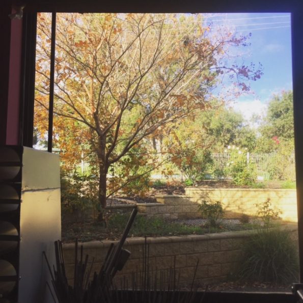 My studio window can be a bit distracting at times. Birds fly in and out, butterflies make their way around the garden, the wind blows the leaves in the trees…all…